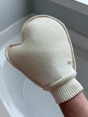 This is so much easier to use than a traditional exfoliating brush. It is easy to clean and the light color makes it feel like it is easily refreshed. The glove is the perfect size for my kids and for me to use.