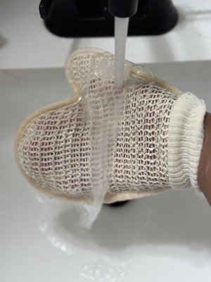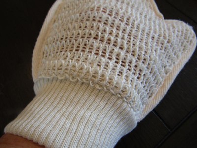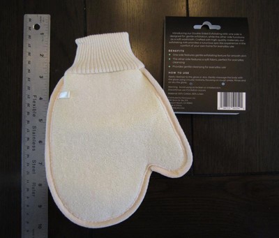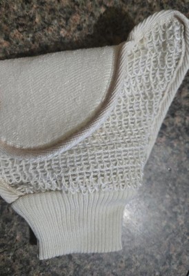 I like the idea of this mitt, however, the textured side is just not rough enough for me. The spongy side is soft and lathered well. The textured side seems thin and doesn’t feel “scrubby”. I felt clean, but lacked exfoliation.