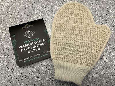 This Dermasuri Two Sided Exfoliating Glove is great for daily exfoliating as well as using just as a shower glove. It has two sides to it with two different materials, also has a little loop so you can hang it on your shower caddy after use.