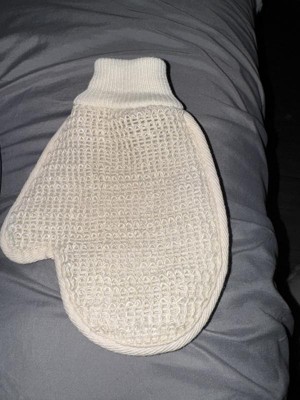 So this glove is great for exfoliation, but not very comfortable on. It's very tight on my wrist and hard to use when on. It is so thick that it's hard to tell if I am using too much pressure or not. It's also hard to bend my fingers to get enough contact to exfoliate. They exfoliation is great though!