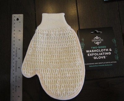 The Dermasuri two sided exfoliating glove is a good addition to my skincare routine. The glove is very simple, yet effective. One side is very textured for deep exfoliation and the other is more like a washcloth (I use to wipe off skin after scrubbing with the deep exfoliation side). The glove fit well and is a somewhat universal fit. It has a stretchy section on the wrist to help it stay on. My skin feels very smooth after using, even for just a few minutes.