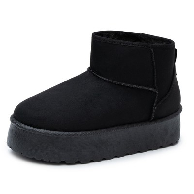 Refresh your footwear collection this season with these uber-cool snow boots. With a chunky platform heel, sleek paneling, and a roomy round toe, they’re built for all-day wear without missing a style beat. Just throw them on with your favorite jeans and a cozy knit—because effortless looks are the best kind. Type: Boots Upper Material: Microfiber Outer Sole: TP Rubber Closed Round Toe Chunky High Flatform Heel Paneling Detail Heel Height: 1.5 inch SH5670