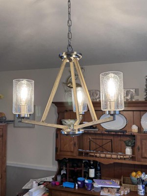 [This review was collected as part of a promotion.] I installed this fixture in a foyer and see how it could also be used in other rooms. The frame was very easy to install and it felt very sturdy. The arms are collapsible and were easy to maneuver into place. The Glass was simple to pop on and looks great with the LED Vintage Restoration Light Bulbs that we added.