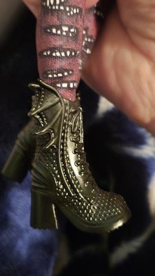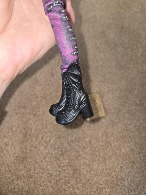 [This review was collected as part of a promotion.] This doll is really cute! I managed to open her & get a few pics before she got destroyed because my granddaughter wasn't home, lol! She loves undressing her dolls & swapping clothes & shoes as soon as she gets them. She loves the Descendants & was so excited when she saw this doll! Like I said above, the doll is adorable with sweet features like big eyes & pretty pink lips. Her hair is stiff with gel, which I get because I assure you even with the gel my granddaughter managed to turn her hair wild anyway. Her outfit is very detailed with a faux zipper on the front of the jacket, scallops at the top of the sleeves, a faux leather collar, along with other printed on designs. The boots & gloves are pretty cool too. The boots especially, with bat wings that flare out on the sides. Both my granddaughter & I love that her outfit is separate pieces, because did I mention that she loves to redress her dolls? She doesn't come with too many accessories, but the little plastic spell book case that is included is sturdy & does snap open & closed. The articulation on this doll is also appreciated as my granddaughter enjoys posing her dolls & placing them in different scenarios, whether it's flying, dancing, flipping around or whatever else is in her imagination. This doll easily bends at the knees for sitting, so no stiff joints on this girly. The rest of her joints like at the elbow & wrist also move easily but hold their pose well. She also stands really well with her boots on. I can tell this is my granddaughters favorite right now because I always get the castoffs she's no longer into when she forces me to play dolls with her & this doll is never among them, lol!