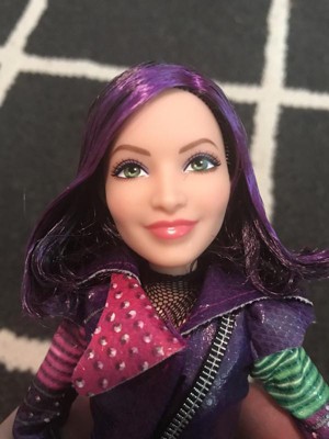 [This review was collected as part of a promotion.] My nine year old daughter is obsessed with this doll. She loves Descendants and can't believe how similar the doll is to the Mal in the movie. Her outfit is colorful with her stylish jacket, pants, gloves, and the boots to complete the look. She comes with her spell book which adds to the fun for imaginative play. It even opens up. Such a fun detail. Her hair is a vibrant purple as well. She's a favorite in our house.