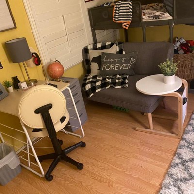 Very cute and comfortable and easy to put together! It looks great in my room and I’m planning to pair it with a cute furry grey ottoman :)