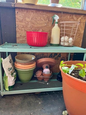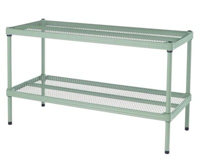 [This review was collected as part of a promotion.] I recently got the this MeshWorks 2-Tier Shelving Unit in Sage Green, and I must say, it has exceeded my expectations. This storage shelving unit is not only stylish but also incredibly versatile. I personally placed it in the entrance for my home for my plants! Will need to get another one to organize my kitchen and for all my shoes. The heavy-duty steel metal mesh design and epoxy coating make it sturdy and capable of holding up to 440 pounds per shelf! What I love most about this unit is the expanded metal mesh shelving, which prevents small items from falling through and allows for easy visibility from any angle. Assembly was a very easy, as it required no tools, and it came with all the necessary components. Overall, I highly recommend for maximizing your storage space while adding a touch of elegance!