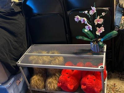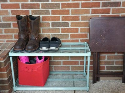 [This review was collected as part of a promotion.] This shelf was very easy to construct just snap the pieces in place. I didn’t expect the mesh shelf to be good metal which I love. I know it’s going to be sturdy and hold up over time. It’s very spacious u can fit about 3pairs up to 4 on the rack. It even fits boxes plus it’s small enough to fit into almost any space.