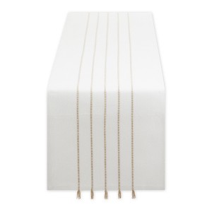 Design Imports 14"x108" Table Runner White/Stone Stripe w/Tassels