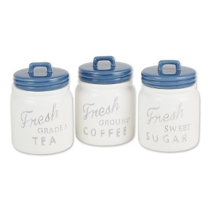 - Set of 3 vintage inspired canisters for coffee, sugar, or tea, hand wash only.