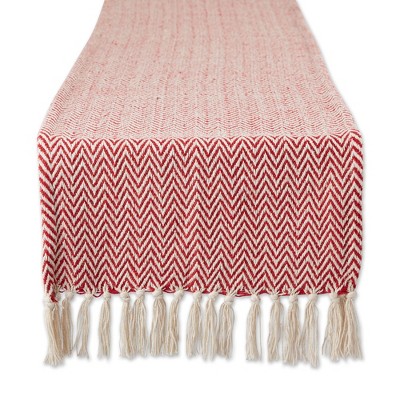 Design Imports Braided Stripe Jacquard Fringe Table Runner, 15X108", Vintage Red