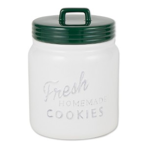 - These vintage inspired ceramic jar available in red, blueberry, or aqua, 8.5x6x6 inches, hand wash only.