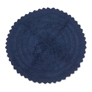 - STYLISH CROCHET BATH MAT: Round 100% cotton bath mat measures 27.5" diameter and is designed to sit alongside your tub, shower, toilet, sink, or vanity