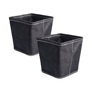 - DUARBLE MATERIAL AND DENIM LOOK - thick, sturdy material that holds shape and gives structure, with a metal hoop sewn at the top for added stability.