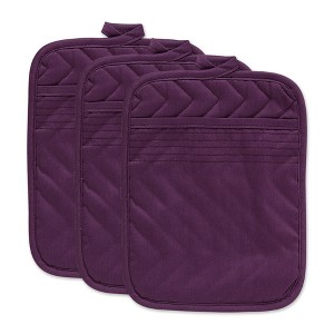 Design Imports Quilted Potholder Set 3 Piece Eggplant 7X9"