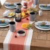 - Our colorfast ribbed dobby stripe table runner allows your dinnerware to stand out, making a statement. A variety of colors make this table runner easy to mix and match.