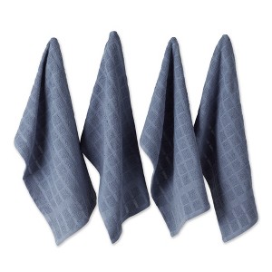 Design Imports Solid Terry Windowpane Dishtowel Set 4 Piece, 16X26", Stonewash Solid