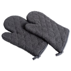 Design Imports Terry Solid Oven Mitt Set 2 Piece Mineral Gray 7X13"