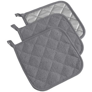 Design Imports Terry Solid Potholder Set 3 Piece Gray 7X7"
