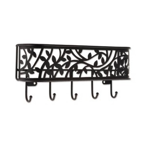 - 5 key hooks and one mail compartment holder for hanging in a black finish.