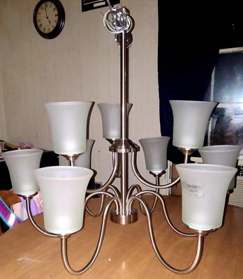 [This review was collected as part of a promotion.] The moment I laid eyes on this gorgeous chandelier, I just knew I HAD TO HAVE IT!! The design is so classy, elegant, & charming! I am very picky when it comes to light fixtures in my home...but this Beauty had my attention at first sight! The 9 light fixtures featuring a frosted glass shade, with the chandelier structure made from stainless steel & a brushed Nickel finish for that timeless, modern, & elegant look. Thus is such a gorgeous light fixtures that will surely be the center of attention in your home, & a perfect conversation starter!