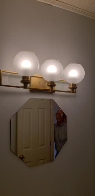 [This review was collected as part of a promotion.] I received this beautiful light fixture to try out and give my honest opinion on from Bazaarvoice and TryitSampling. I was remodeling my bathroom and I put the light fixture in and turned it on it was perfect lighting for my bathroom. I put a new mirror under the light fixture and it matched perfect. I could see myself in the mirror because the lighting was so great. The globes were very nice and worked well with the brass fixture.