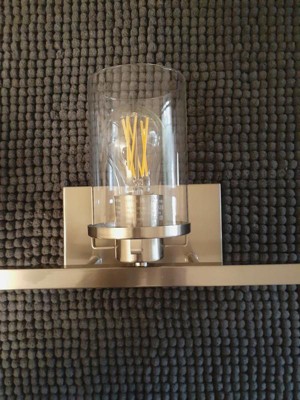 [This review was collected as part of a promotion.] I'm glad I got this light fixture for my teenage sons' bathroom. The only light that they have in their bathroom is from their vanity light. It can be a little dark in their shower area. With this vanity light with the clear glass, it helps give them more light than their previous frosted glass light fixture. This is a nice industrial style light fixture and looks good in their bathroom. The only thing with this fixture is that the mounting plate isn't designed to be flushed to the wall. It made it difficult for my husband to put it on the wall.