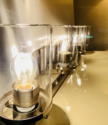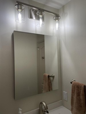 [This review was collected as part of a promotion.] I am currently renovating our bathroom. When I saw this Designers Fountain Jedrek light, I definitely wanted it for my bathroom. The industrial style, the brushed nickel finish and the clear glass globes were exactly what I needed for an over the vanity light. I bought and installed Edison style LED bulbs which look great and provide a great deal of light. What I really like about this light is that this light can be installed in two ways, the globes turned up towards the ceiling or down towards the vanity, which is the way I installed it. The only reason that I didn’t give this light a five star review was because of the fact that there were some scratches on the brushed nickel finish of the light bar. I can’t see the scratches now that the light is installed but the scratches concerned me when I opened the box the light was in. This is a great light.