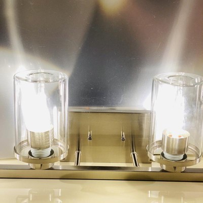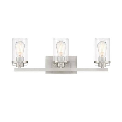 Perfect in a light industrial setting or a more transitional interior. Jedrek is today�s answer for an updated versatile look. Made from durable steel for years of enjoyment and illumination. Timeless Brushed Nickel finish works well with nearly any d�cor Extends 6.25 inches from the wall Can be mounted with shades facing up or down Uses 4 medium-base 60W max bulbs (not included) Clear glass shades for bright, energizing light Rated for Dry or Damp indoor areas Industrial vanity is great for bathrooms, bedrooms, or other rooms where you need a extra light.,