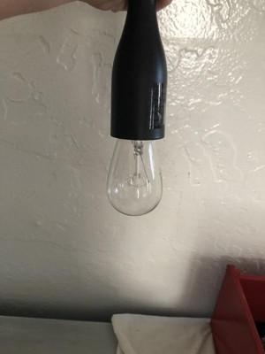 Ornamental details inspired from the past, and a rich layering of lights, creates visual interest in our Louise Collection. A nod to nostalgia with the delicately turned spindles and cast appointments, Louise addresses the desire of the consumer searching for more comfort and a soothing environment inside their homes. Made from durable steel for years of enjoyment and illumination. Sleek Matte Black finish goes well with nearly any decor Max hanging height of 127.5 inches with included cord Pendant is adjustable for sloped ceilings - up to 45 degrees Uses 1 medium-base 60W max bulb (not included) Bare bulb design eliminates the shade and maximuzies illumination Rated for Dry indoor areas only Modern and Glam pendant is great for living rooms, foyers, dining areas, and small-to-medium-sized rooms.,