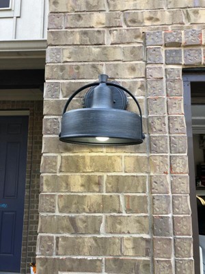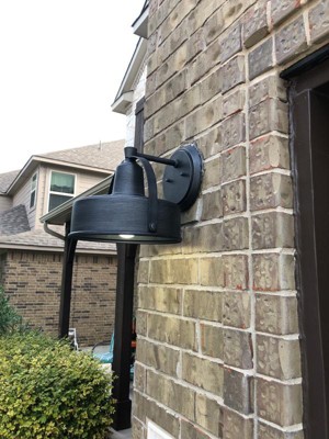 [This review was collected as part of a promotion.] This has a great look to it and really helped the front of the house. It’s almost a brushed metal look in a dark brown color. The size is just perfect for the place we wanted it and it’s about 11in across. The installation is super easy and the light bulb has direct access so you can change it when it burns out.