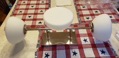 [This review was collected as part of a promotion.] I absolutely love the Design Fountain Zio, 3 lamp Vanity light. The Mid- Century design will be a perfect accent for helping restore my bathroom to its former 20th century glory. Its 24" Nickel base and offset frosted half globe shades give it a unique appearance and will fit perfectly over my bathroom sink, the 60 watt bulbs should light up the whole room with ease. I am a little disappointed that in today's LED world that this modern lamp came with 3 Halogen Bulbs seems like they might run a bit hot but LED replacements are readily available and inexpensive, so no big deal. I wish I had pictures of it installed but when I started removing the old lamp I found nothing but a hole in the wall so I have to install a junction box to make it right. Old houses, not the first short cut I've found. Probably won't be the last.