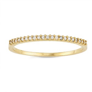 A whisper of elegance. This delicate stacking band by Designs By Gioelli is crafted in rich 10K yellow gold and adorned with a row of genuine round-cut diamonds. Perfectly dainty, it’s ideal for stacking, layering, or wearing solo for a minimalist sparkle.