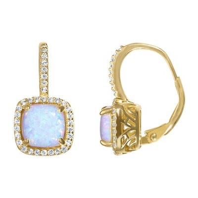 Add a touch of elegance to your jewelry collection with these 14K Gold Over Sterling Silver Leverback Earrings. Featuring a stunning cushion-cut gemstone, these earrings are surrounded by a dazzling halo of genuine diamonds, enhancing their brilliance. The leverback closure ensures a secure and comfortable fit, making them perfect for both everyday wear and special occasions. The intricate filigree detailing on the gallery adds an extra touch of sophistication, making these earrings a timeless addition to any jewelry collection.