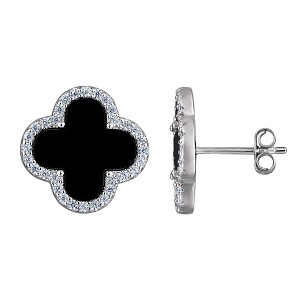 Sophisticated and bold, these clover-shaped stud earrings from Designs By Gioelli feature rich black onyx at the center, bordered by a dazzling halo of white stones for a chic contrast. Set in sleek sterling silver, the earrings offer a classic yet contemporary silhouette perfect for elevating everyday or evening wear.
