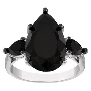 The ring features a large, pear-cut black spinel as the center stone, offering a deep, opaque black hue with a sleek and polished finish.