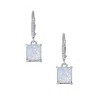 Add a touch of ethereal beauty to your jewelry collection with these Sterling Silver Created Opal Dangle Earrings. Featuring a radiant, rectangular-cut created opal, these earrings shimmer with an enchanting play of colors, reflecting hues of soft blues, pinks, and greens. The leverback closure, adorned with delicate cubic zirconia accents, enhances their elegance while providing a secure and comfortable fit.