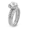 Radiate timeless beauty with this exquisite bridal set by Designs By Gioelli. Crafted in sterling silver, the set features a brilliant round-cut created white sapphire as the stunning centerpiece. Twisted detailing adorned with shimmering accent stones adds a romantic and vintage-inspired flair to both the engagement ring and matching band.