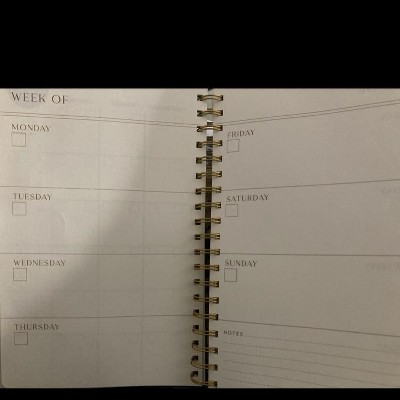 A: The planner features a spiral binding, allowing easy flipping and tearing of pages.