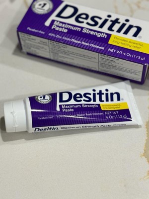 The #1 choice of pediatricians and parents, Desitin Maximum Strength Diaper Rash Paste works to effectively treat and help prevent diaper rash discomfort. Made with 40% maximum-level zinc oxide, this rich, thick diaper rash cream soothes and relieves on contact by sealing out wetness and protecting chafed skin due to diaper rash. Dermatologist- and pediatrician-tested, it is clinically shown to protect baby's delicate skin for 12 hours. The hypoallergenic formula of this diaper rash treatment is gentle enough for daily use and is free of parabens, phthalates, dyes, and soap. Desitin Maximum Strength Diaper Rash Paste provides 5-in-1 action to treat, heal, protect, soothe and prevent diaper rash, for healing you can see and relief your baby can feel.