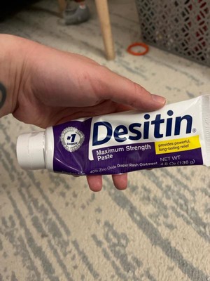 The #1 choice of pediatricians and parents, Desitin Maximum Strength Diaper Rash Paste works to effectively treat and help prevent diaper rash discomfort. Made with 40% maximum-level zinc oxide, this rich, thick diaper rash cream soothes and relieves on contact by sealing out wetness and protecting chafed skin due to diaper rash. Dermatologist- and pediatrician-tested, it is clinically shown to protect baby's delicate skin for 12 hours. The hypoallergenic formula of this diaper rash treatment is gentle enough for daily use and is free of parabens, phthalates, dyes, and soap. Desitin Maximum Strength Diaper Rash Paste provides 5-in-1 action to treat, heal, protect, soothe and prevent diaper rash, for healing you can see and relief your baby can feel.