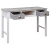 - This vintage writing desk brings a classic vibe to your home office or study, mixing practicality with a touch of class. Made from solid Paulownia and Poplar wood, its attractive grey finish not only boosts its good looks but fits in beautifully with different decor styles, whether classic or modern. It's perfect for students and pros, handling all your writing and computing tasks with ease, making it a fab addition to your space. Ample Storage: This desk has two traditional drawers, each about 17.7 long, 5.9 wide, and 3.9 high, giving you plenty of space to keep your stationery and stuff tidy. Plus, the open compartment is perfect for quick access to notepads or files.Stylish Design: With its vintage style and decorative grey finish, this desk looks fantastic and adds elegance to any room. Whether you're working from home or chilling in a study, it's both classy and functional.Durable Materials: Made with solid Paulownia wood on top and solid Poplar wood for the frame and legs, this desk is built tough. The matte finish not only looks modern, it's also easy to clean and stands up against daily wear and tear.Easy Assembly: Designed for quick setup, you can get this desk ready with just one person and some common tools. All you need is a simple screwdriver to kick back and enjoy your new workspace.Functional Dimensions: The desk has a rectangular shape and measures 43.3 long, 17.7 wide, and 29.9 high, making it a medium-sized desk that's just right for home offices, studies, or even bedrooms. Color: GreyShape: RectangularMaterial: Solid Paulownia woodFinish: MatteIndoor/Outdoor: Indoor OnlyCover Included: NoRoom: Home OfficeMaximum Number of People: 1Dimensions: 17.7 x 43.3 x 29.9 in (W x L x H)Surface Height: 0.8 inLeg Height: 29.9 inWeight: 16.64 lbsDelivery Contains: Writing desk with 2 drawers and 1 open compartmentAssembly Required: YesRecommended Number of People for Assembly: 1