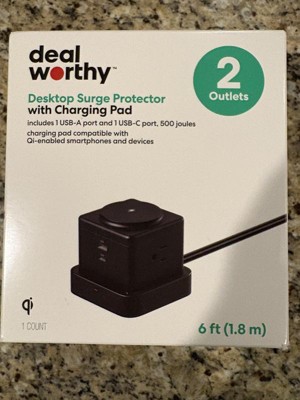 Nice durable desktop surge protector with charging pad. I love how it is compact and all in one. There is a USB A port and a USB C port, so perfect for many types of products that need to charge in one set spot. The space saving flat plug is nice as well and doesn't take over the outlet much at all.