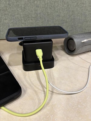I like how convenient this charger is. It can sit on the desk and it is easy to connect charging cords, or put a phone on the top to charge wirelessly. It is bigger than I anticipated though and takes up a lot of space on my desk.