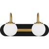 Matte black and brushed gold accents make a beautiful, modern pairing in Desmond. Opal etched glass globes complement the bold bath light design, delivering the perfect amount of illumination. Desmond is available in a variety of sizes, allowing you to easily customize to your desired vanity setting.