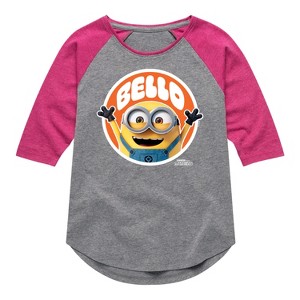 Girls' - Despicable Me Minions - Hello Bello Minion Shirt Tail Raglan Graphic T-shirt