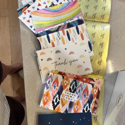 [This review was collected as part of a promotion.] Wow!! Who doesnt love a good variety of thank you cards. These cards are not only vibrant, they are a piece of art! The designs are so unique and beautiful. I love that the cards are a decent card stock. They are blank inside so you can write whatever you want/need. Perfect for teachers or doctor appreciation. I love that it also comes with a variety of colored envelopes and thank you stickers to seal the deal. I received an incentive to write this review.