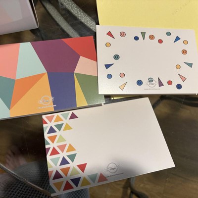 [This review was collected as part of a promotion.] There are so many different options on these cards, I love all the different prints and designs on each one of them. I also love the different colored envelopes for me to mail these in, the colors are so cute and go with many of the different cards. These would be great for when having a baby or getting married to send out thank you notes. There is such a good variety of notes and the cards are very thick and sturdy. I received an incentive to write this review.