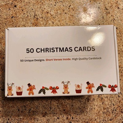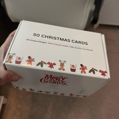 [This review was collected as part of a promotion.] This 50 Christmas Card box is such a fun and thoughtful set. Every single card has a unique design and a different saying inside, which makes sending them feel more personal and less repetitive. I also love that it includes two envelope color options, red and white, so you can mix things up. The little stickers for sealing the cards are a great extra touch and make everything feel polished. The quality is nice and the variety is impressive. I’ll definitely be using these all season long and recommending them to friends.