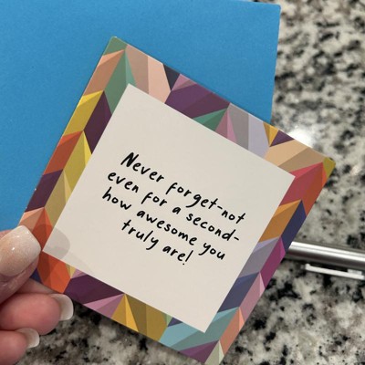 - Post-It Note Size: This inspirational mini card set fits in pockets, lunch boxes, and other small spaces